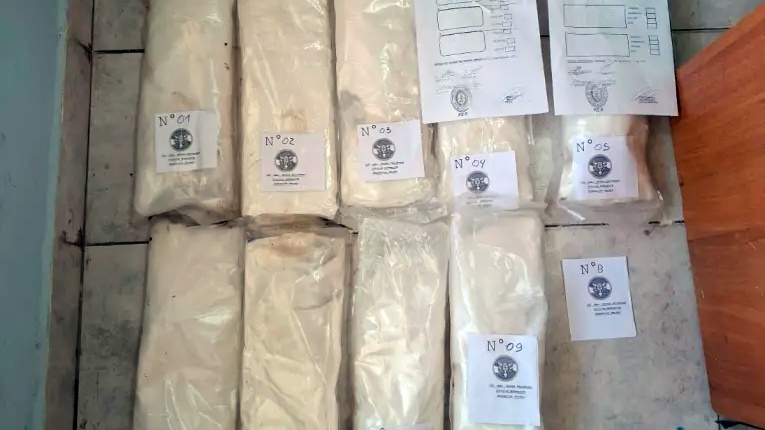 Posteriormente, personal especializado halló seis envoltorios adicionales ocultos en la estructura del rodado. Los reactivos químicos confirmaron que se trataba de clorhidrato de cocaína, con un peso total superior a los 14 kilos.
